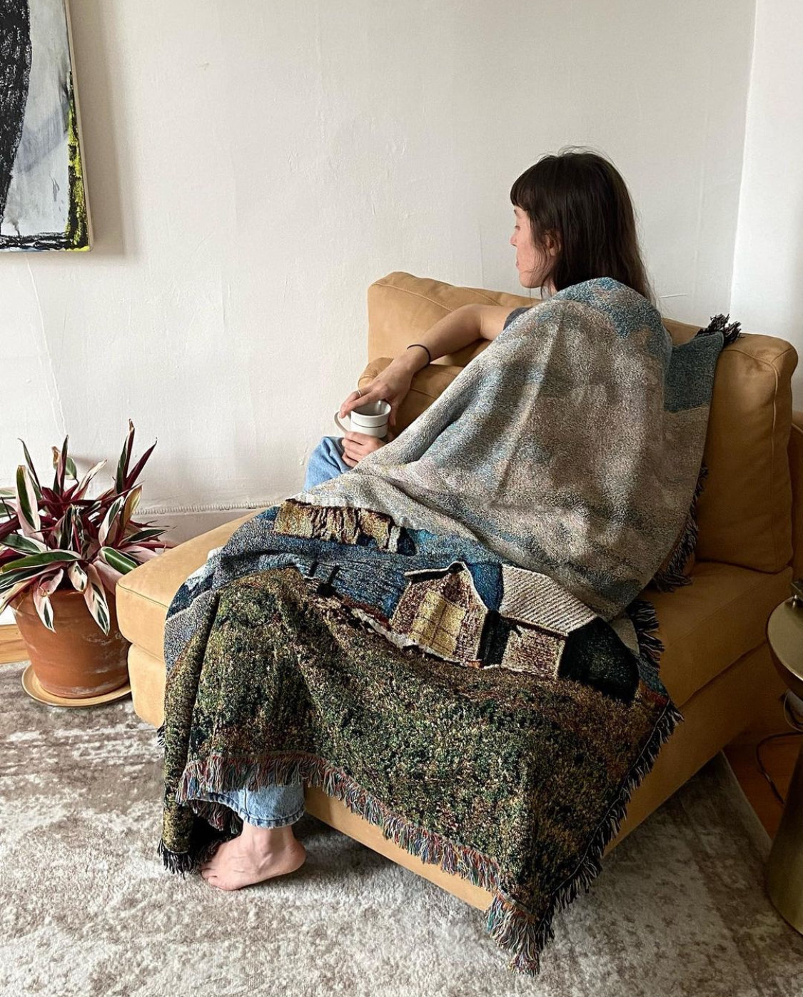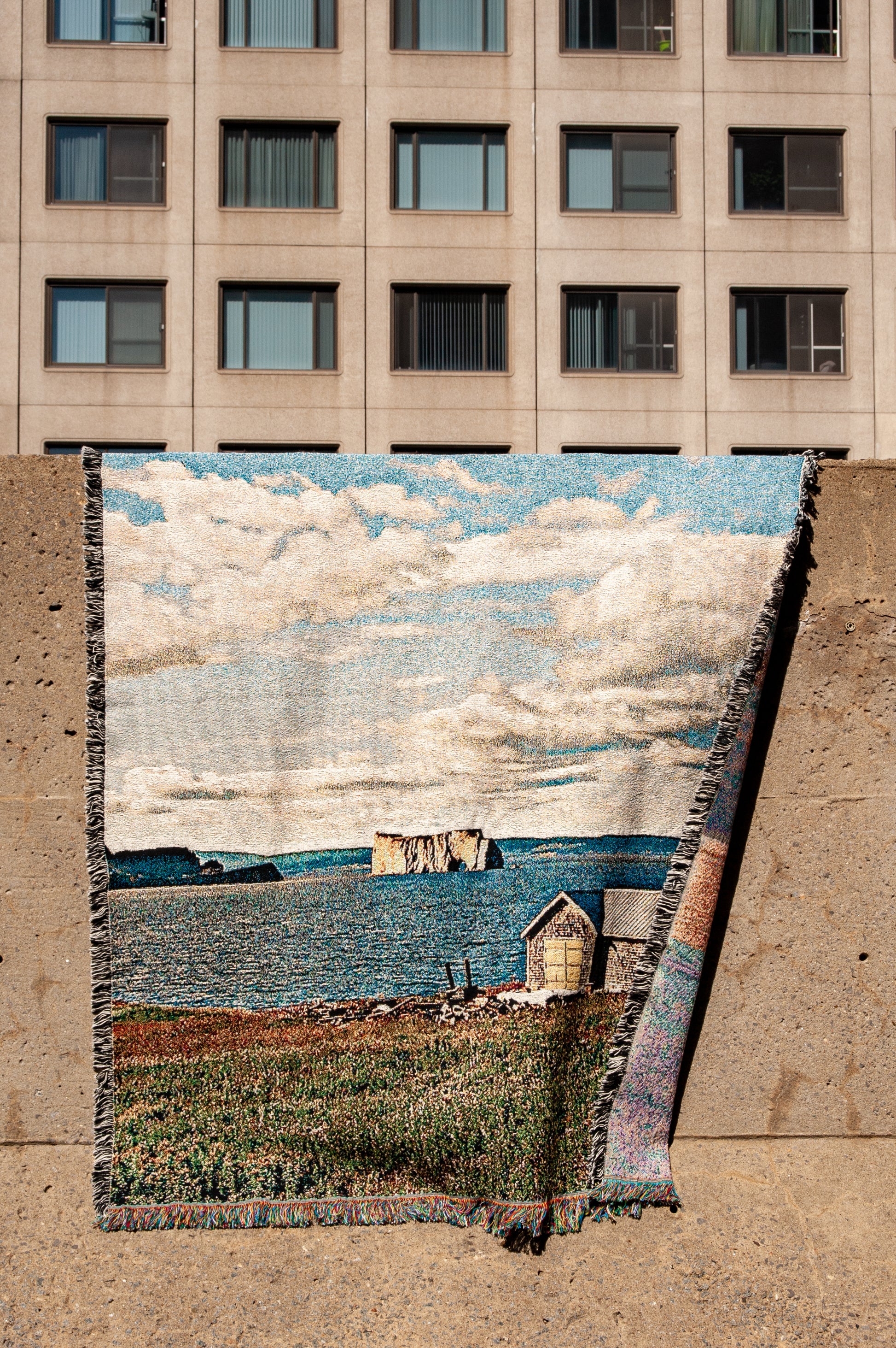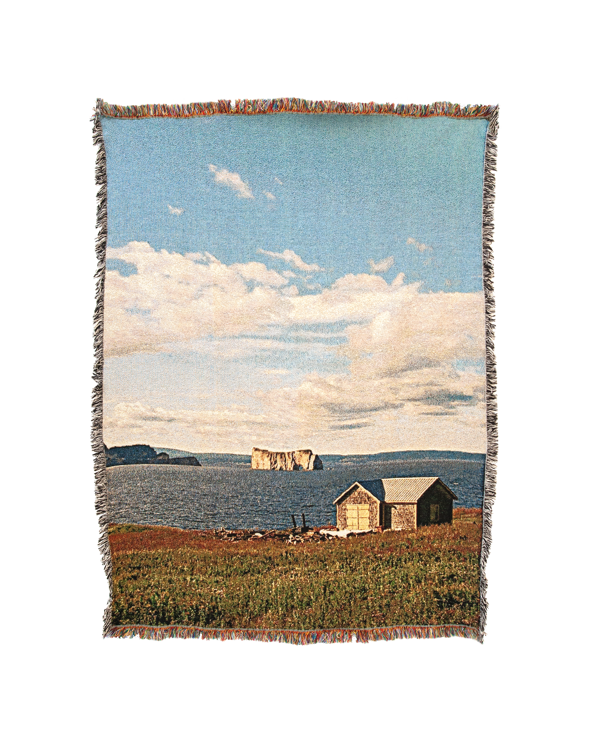 This woven blanket presents a Quebec landmark called "Rocher Percé". A special piece to accent your living room or bedroom.